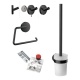 Link to: Emco Round szett feketeFedél nélküli wc papír tartó, fogas, wc kefe, ragasztó szett