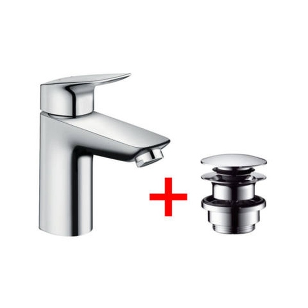 Hansgrohe Logis Mosdócsaptelep 100 egykaros, push-open lefolyó-garnitúrával vízmelegítőkhöz króm mennyiség