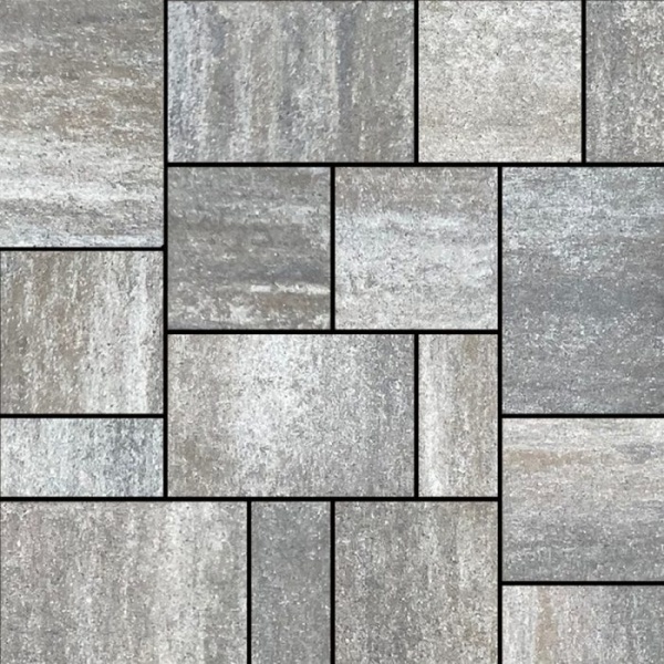 Grafit-terra színű, modern stílusú, változatos szín- és formavilágú, különleges, melírozott árnyalatban elérhető kombi térkő, intelligens fugatechnikai rendszerrel, térkő elmozdulás és károsodás nélkül.