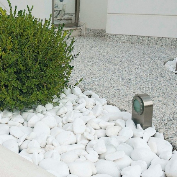 Fehér színű kerti díszkavics, kisebb vagy nagyobb méretben, fehér, illetve szürke színben. Természetes anyag, amely önmagában vagy egymással keverve is használható.