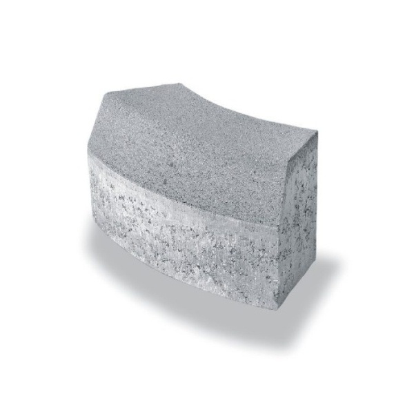 Klasszikus stílusú, szürke színű, gyorsan beépíthető, íves útszegély (R=0,5 m), kvarc kopóréteggel. Közterületek, parkolók, ipari parkok, utak szegélyezésére.