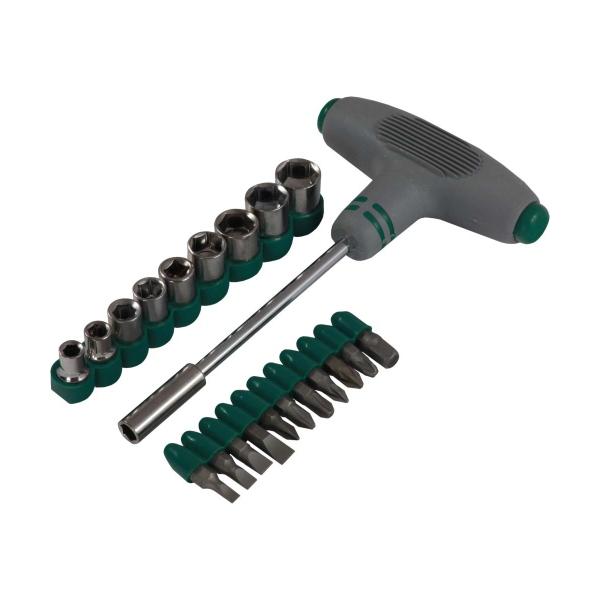 Stalco CSAVARHÚZÓ KÉSZLET T NYÉLLEL, BIT+DUGÓFEJES, 21 RÉSZES, S-1232...