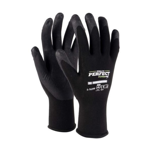 Stalco Munkavédelmi kesztyű, nylon, fekete, 9-es méret, NITRILE FLEX FOAM, PERFECT POWERMAX S-76