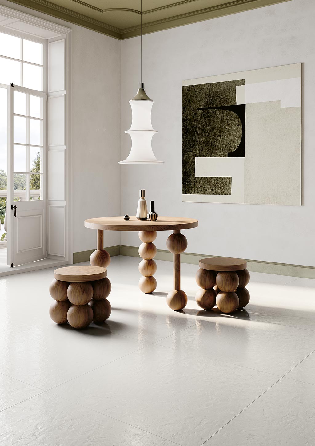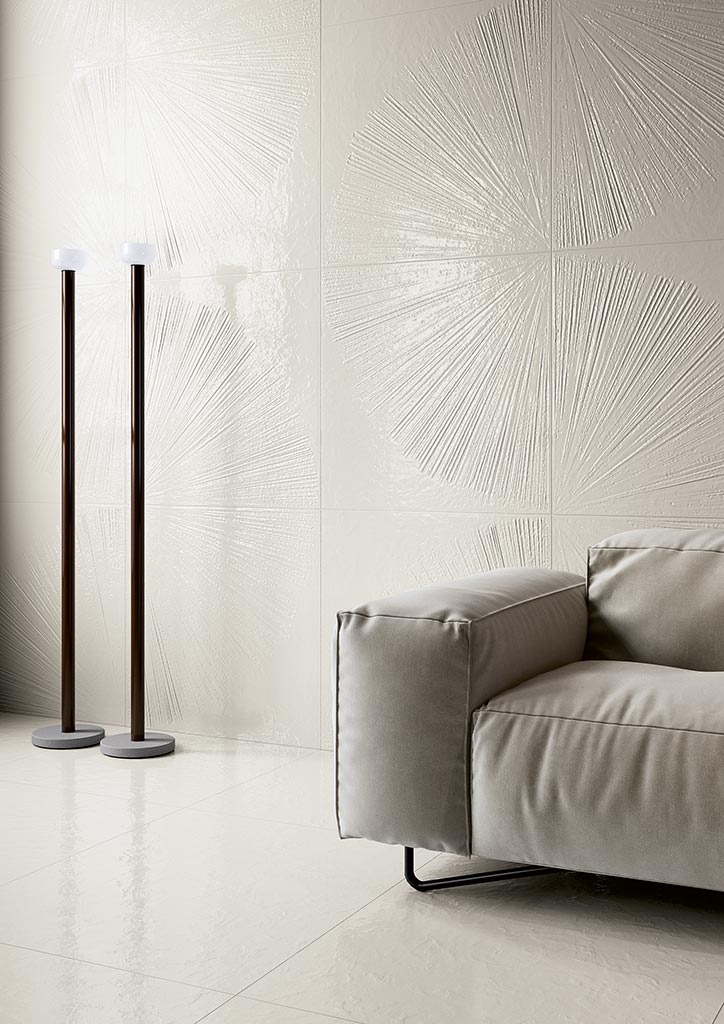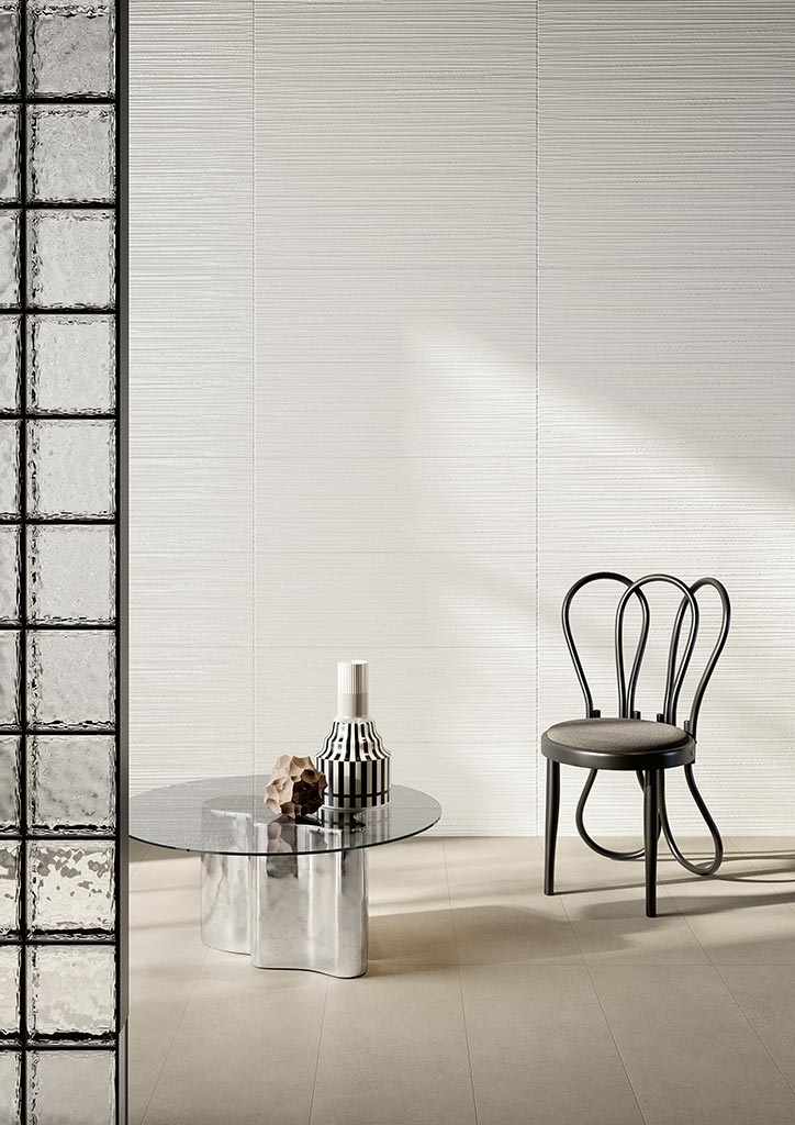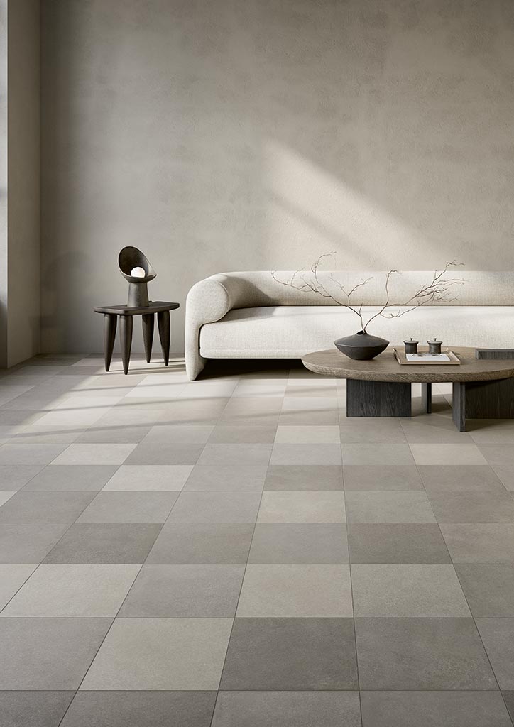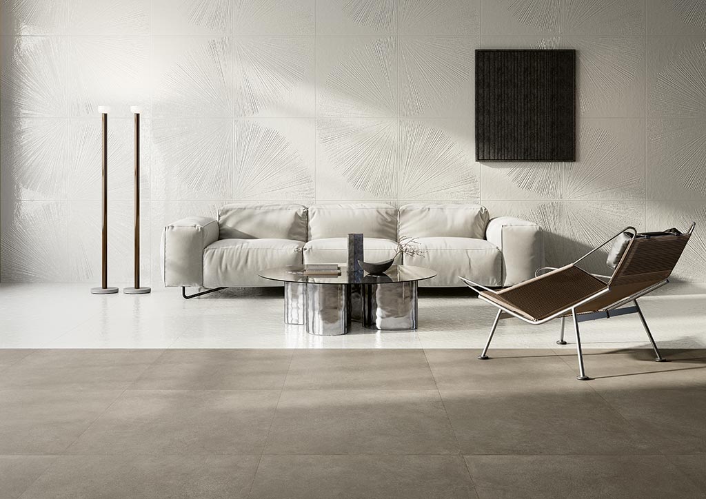 Az Ogi egy betonhatású burkolatcsalád, amelynek különlegessége hófehér fali lapjaiban rejlik. A padlólapokat hat tónusban, köztük három meleg és három hideg árnyalatban választhatjuk. A fali csempéi két verzióban érhetőek el, a mázas felületű Maiolika a klasszikus olasz kézművesség hagyományai előtt tiszteleg, míg a Deco Ventaglio egy páratlan, strukturált mintázatot kínál. Ez utóbbi negyed köríves mintázata izgalmas lehetőségekkel kecsegtet, hiszen több lap közös használatával olyan, mintha képzőművészeti alkotások elvenednének meg falainkon. További háromdimenziós dekorokkal is találkozhatunk ezen a palettán, amelyet a padlólapokkal harmonizáló színekben kérhetünk. Mix elnevezésű dekorelmei hideg vagy meleg tónusokban, 30×30 cm-es lapokból kínálnak egyedi kompozíciókat falra és padlóra. Ez a kollekció egyedülálló enteriőrök kialakítására született, ahol a beton ereje a kerámia kifinomultságával párosul, varázslatos egyensúlyt teremtve.
