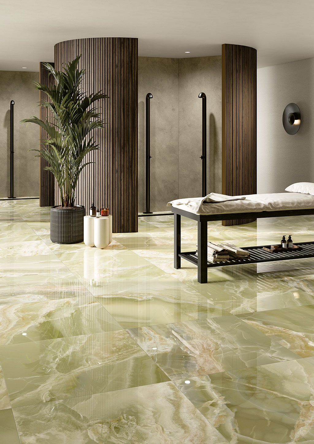 Az Unica az ónix kristályok szépségét, mélységét és egyedülálló felületét kelti életre. A kollekció öt magával ragadó árnyalatot kínál. A klasszikus Crystal White mellett helyet kapott a rózsaszín tónusokkal játszó Misty Rose, a mélyfekete Deep Dark, a karakteres foltokkal tarkított Cloudy Grey és a látványos Jade Green. A lapok fényes felülete továbbfokozza a minták mélységérzetét. A falakra a fehér és a rózsaszín kombinációiból választhatunk geometrikus mintázatú dekorokat. Ha exkluzív megjelenésű enteriőrök megalkotására törekszünk, akkor a Unica tökéletes társunk lesz.