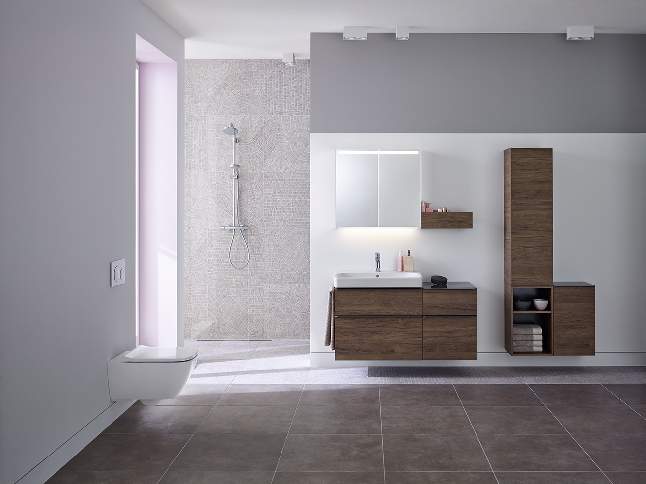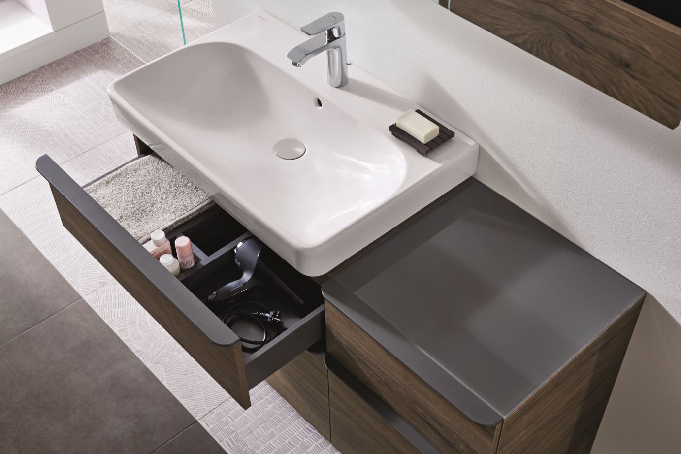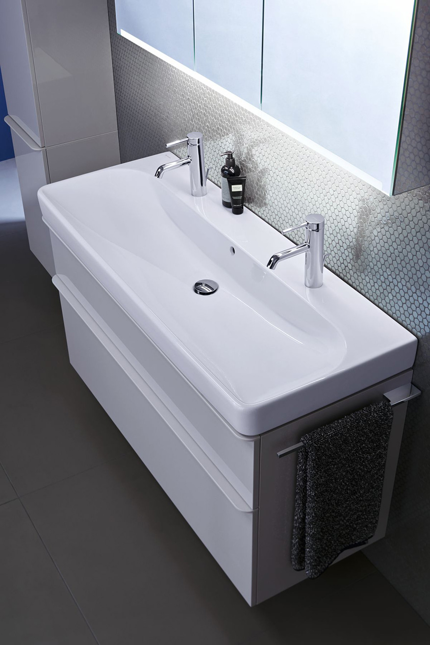 A légies vonalvezetésű Smyle komplex szaniter család megoldást kínál a családi és vendég fürdőszoba egyaránt. Különböző szélességben kínál páros vagy akár kis méretű kézi mosdótálat. A Rimfree technológiával is elérhető WC-k és bidék karcsúsított formavilága harmonizál a kollekció többi darabjával. A fürdőszoba bútorokkal válik teljessé a kollekció, amelyhez kiváló minőségű anyagokat és nedvességálló bevonattal kezelt felületeket alkalmaznak. A fiókok önzáródó funkcióval rendelkeznek. Maximális helykihasználás és kifinomult design jellemzi a szekrényeket, melyeket fényes fehér, szürke, matt láva színben vagy famintázattal választhatunk.