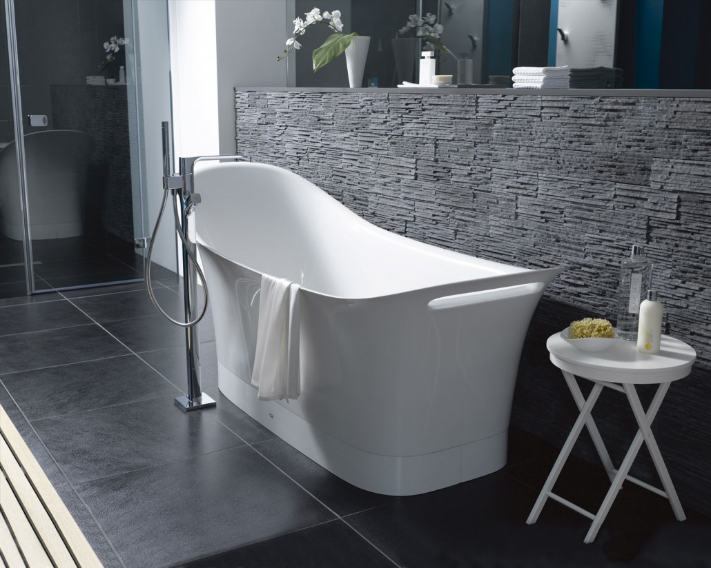 A térben álló formatervezett kádhoz a Villeroy&Boch Aveo vagy My Nature kollekcióját javasoljuk. Nemcsak esztétikus, de a tökéletes kikapcsolódás kulcsa lehet egy ilyen mutatós darab.