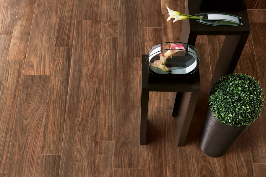A helyiség karakterét a meleg színű, fahatású padlóburkolat biztosítja, melyhez számtalan remek ajánlatunk van, akár az Atlas Concorde Etic vagy a Ragno Woodmania lapjai.