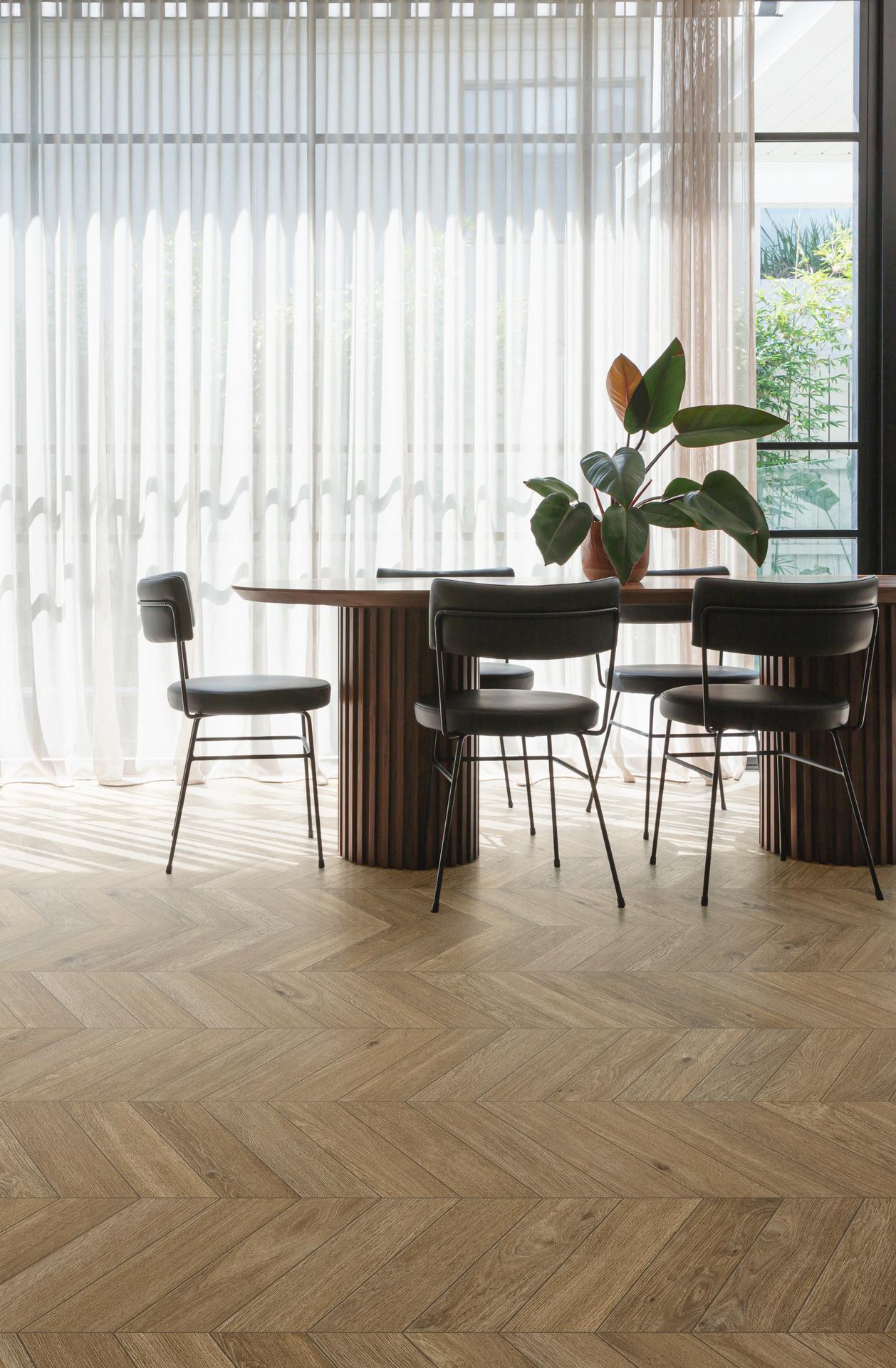 Az Ossimori fahatású családja négy, finom árnyalatban kínál lapokat bel- és kültérre egyaránt. A két 25x150cm-es és 20x120cm-es méret mellett a 11×54 cm-es chevron mérettel kombinálva új, izgalmas burkolási lehetőségeket kínál. A kollekció kifinomult, aprólékos mintázatát az innovatív Sublime Sync technológia garantálja. Ez a digitális eljárás, újrateremti a régi fadeszkák hatását, amelyek a kopás és a talplenyomatok miatt elvesztették a viaszolt felület fényét, de megőrzi eredeti fényét a kevésbé kopott területeken. Az ultramatt részletek a tükröződésmentes a Zero Glossy technológiának köszönhetően elevenednek meg.