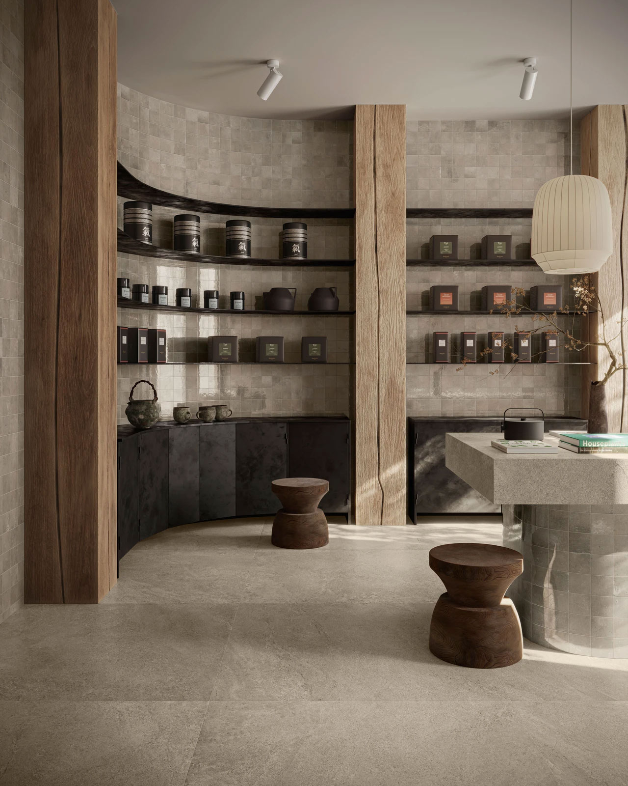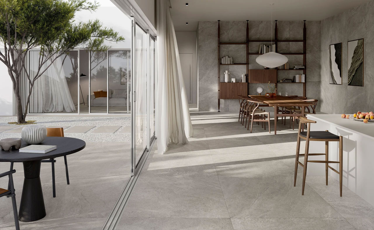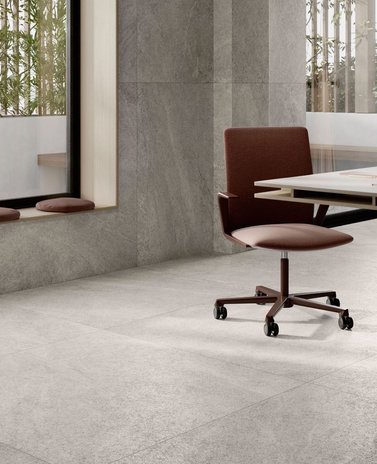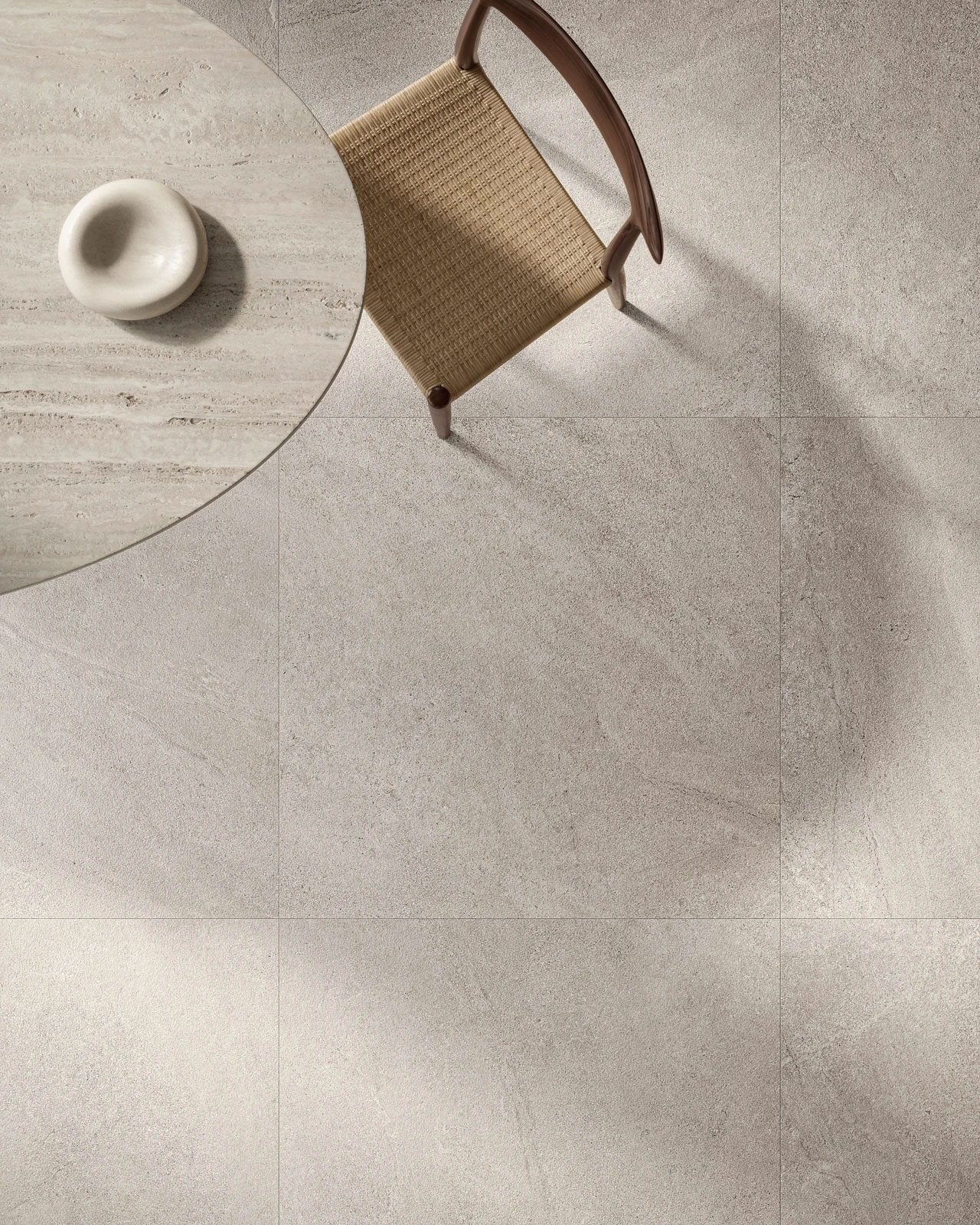 A Bergstone kőhatású kollekciót az alpesi hegyek ihlettek, megidézve a természetes kőzetek tapintását és a természet ősi szépségét. A hét árnyalat – Light, Pearl, Ivory, Sand, Grey, Dark és Black – a hideg tónusoktól a melegebbekig terjed, így bármilyen enteriőrben használhatjuk. A kollekció különlegessége a Carve3D technológiának* köszönhető változatos, valósághű kőhatású felület, amely beltéren elegáns, kültéren pedig időtálló megoldást kínál. A csúszásgátló kivitelnek köszönhetően a teraszok, medenceterek és átmeneti terek burkolataként is kiváló választás. A Bergstone széles méretválasztéka – 120×120, 60×120, 90×90, 60×60, 30×60 és 15×15 cm – lehetővé teszi a rugalmas tervezést, a dekoratív elemek, mint a csíkos 60×120-as lapok és a Mosaico 30×30-as formátumok pedig finom ritmust és textúrát visznek a terekbe. A kollekció az elegancia, a funkcionalitás és a természetes anyagszerűség tökéletes egyensúlyát teremti meg, amely tökéletes megoldás mind lakó-, mind közületi projektekhez.